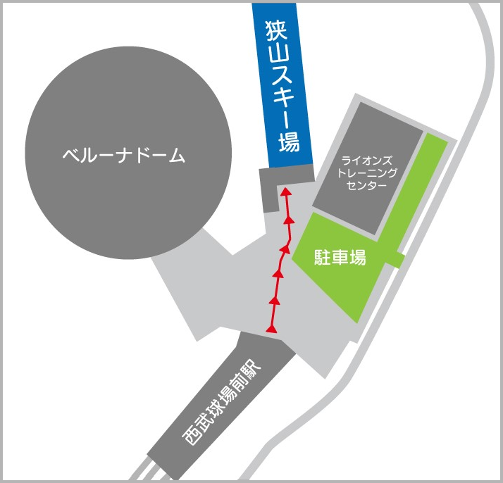 - ・池袋線「西所沢」駅経由、狭山線「西武球場前」駅下車