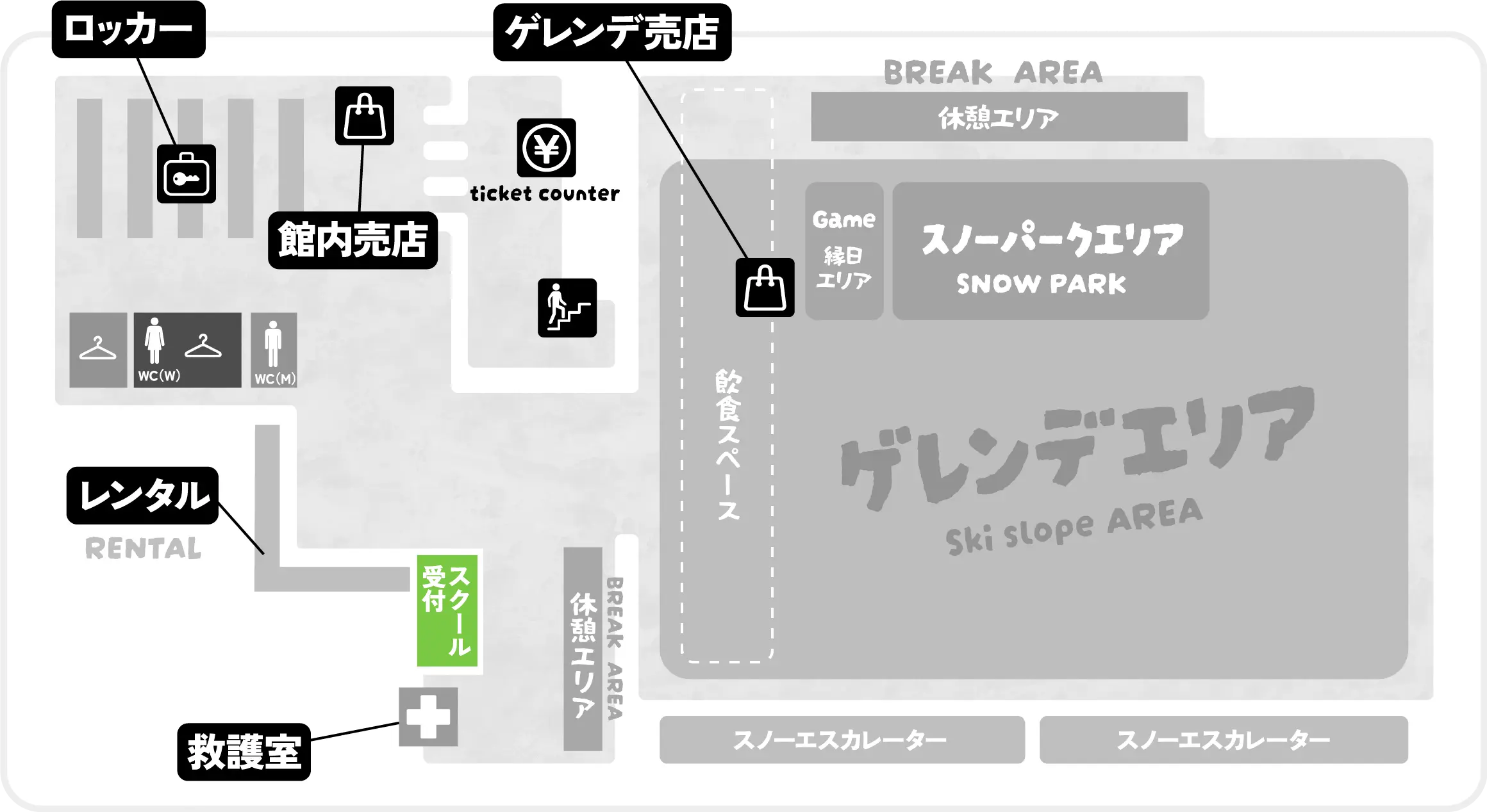・当スキー場では、施設の許可を得ていない個人や団体によるスキー・スノーボードの無許可スクール営業は禁止しております。