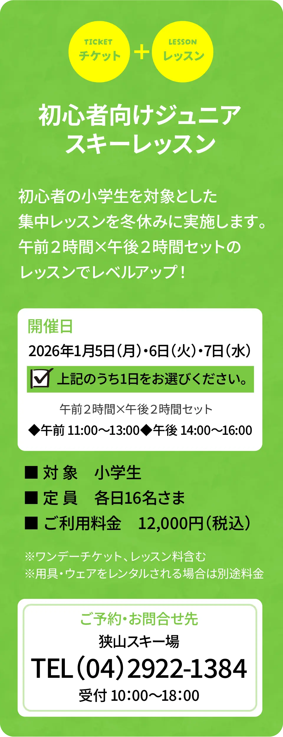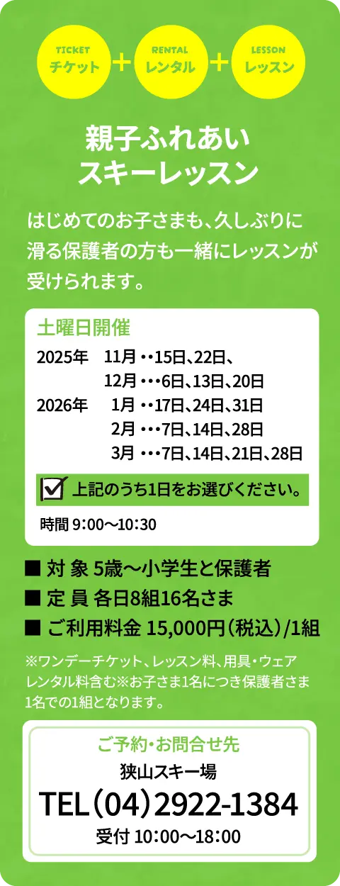 お子さまのスキーデビューや久しぶりに滑る保護者さまにもおすすめです。