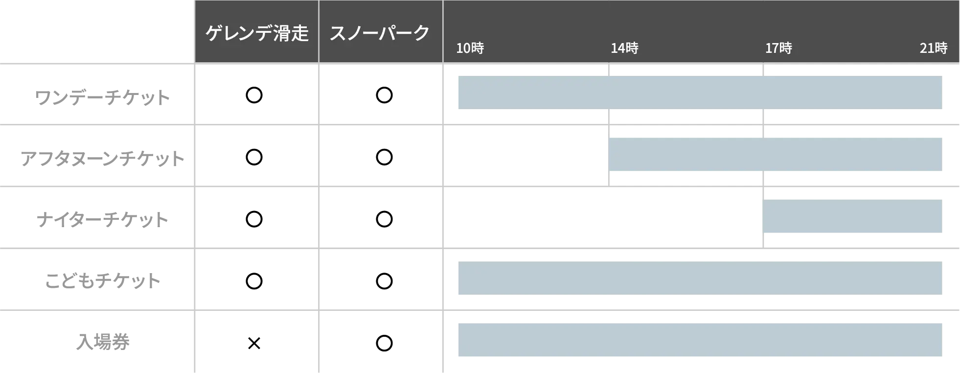 | ご利用時間 | 10:00~21:00 | 14:00~21:00 | 17:00~21:00 | 10:00~21:00 |